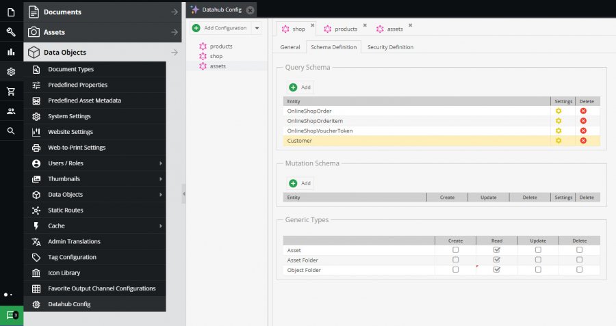 Data Hub plugin supports Queries and Mutation for Data Objects & Assets.